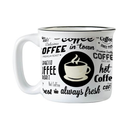 Kubek ceramiczny w stylu retro do sublimacji - biały z czarnym rantem - duży