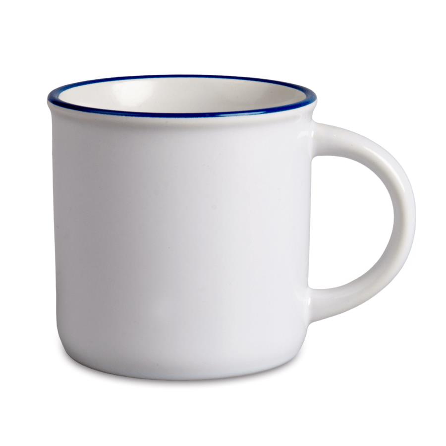 Kubek ceramiczny w stylu retro do sublimacji - biały z granatowym rantem