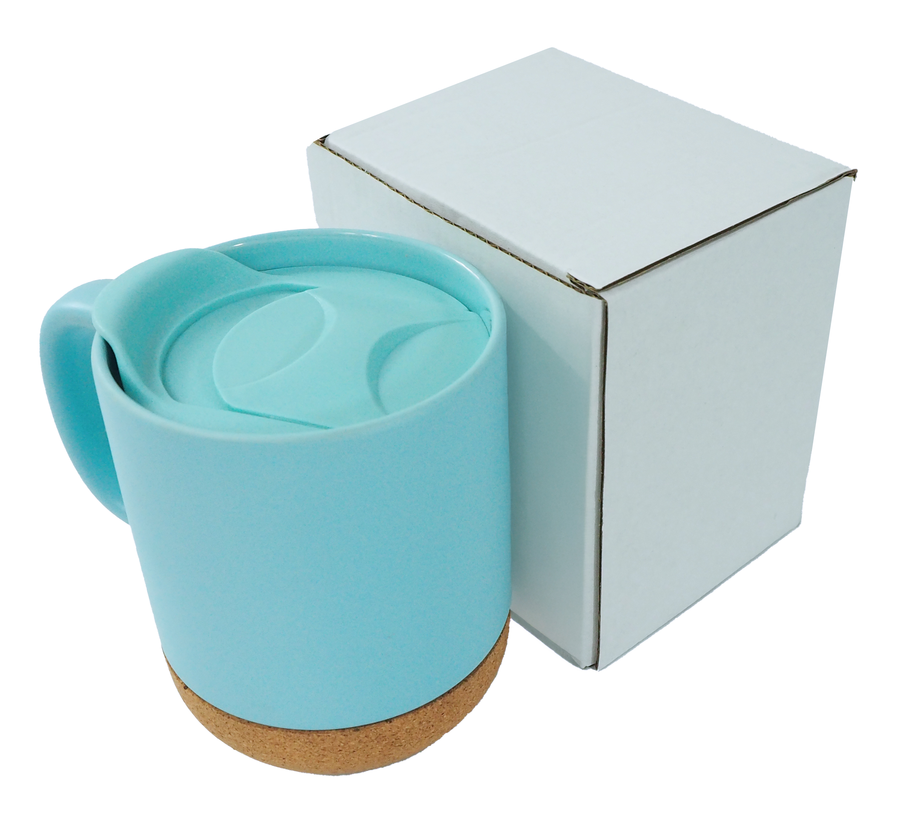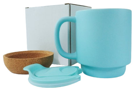 Kubek do sublimacji kawowy - kolorowy z wieczkiem i korkową podstawą