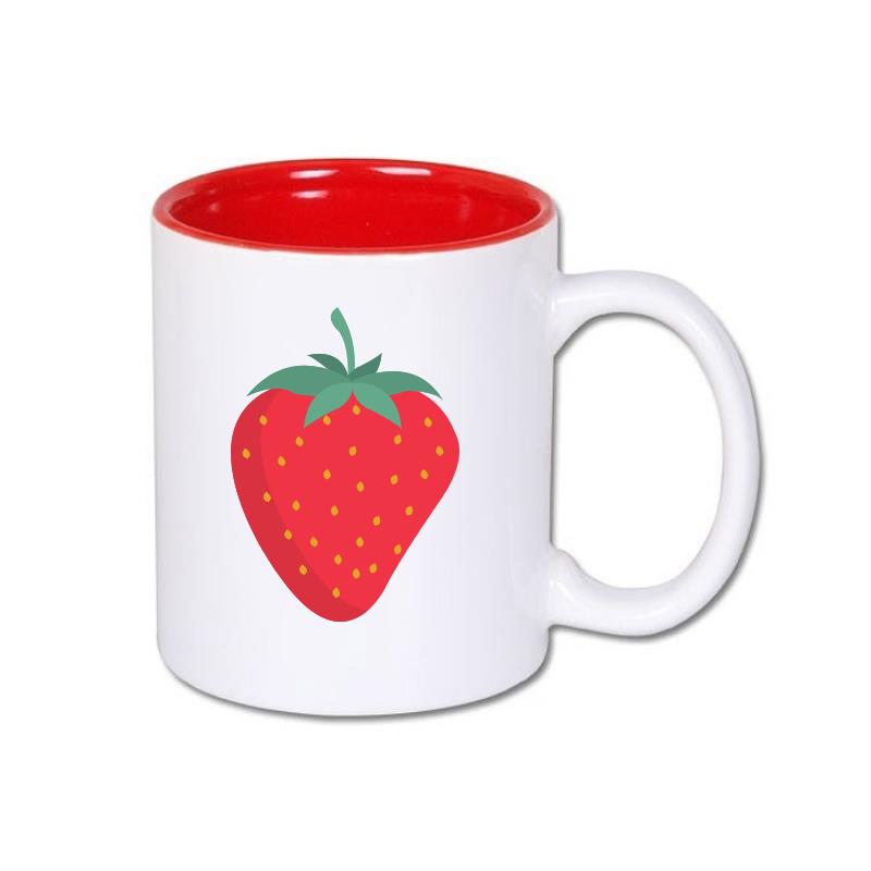 • Błyszczący biały kubek do sublimacji z dużym, wygodnym uchem oraz kolorowym środkiem