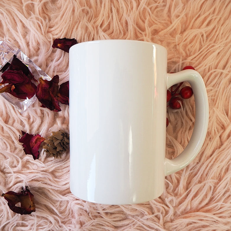 • Błyszczący biały kubek z dużym uchem do sublimacji o pojemności 450ml