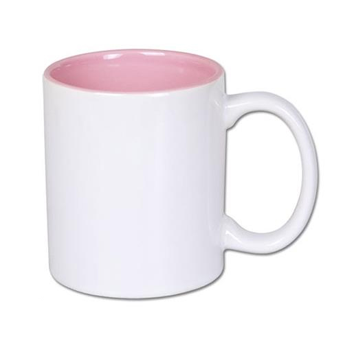 • Błyszczący biały kubek do sublimacji z dużym, wygodnym uchem oraz kolorowym środkiem