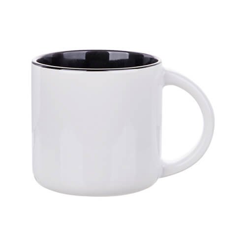 • Błyszczący biały kubek do sublimacji z dużym, wygodnym uchem oraz kolorowym środkiem