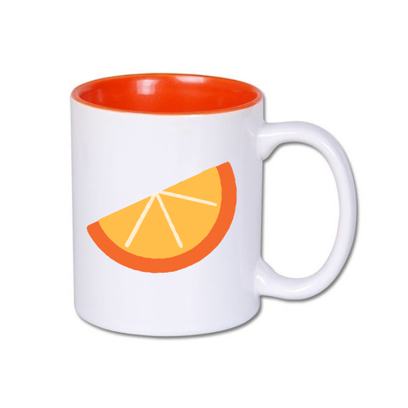 • Błyszczący biały kubek do sublimacji z dużym, wygodnym uchem oraz kolorowym środkiem