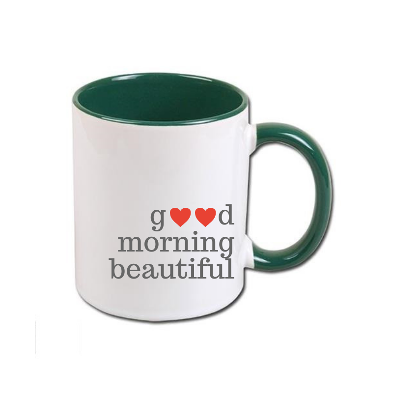 • Błyszczący biały kubek do sublimacji z wygodnym, kolorowym uchem oraz wnętrzem