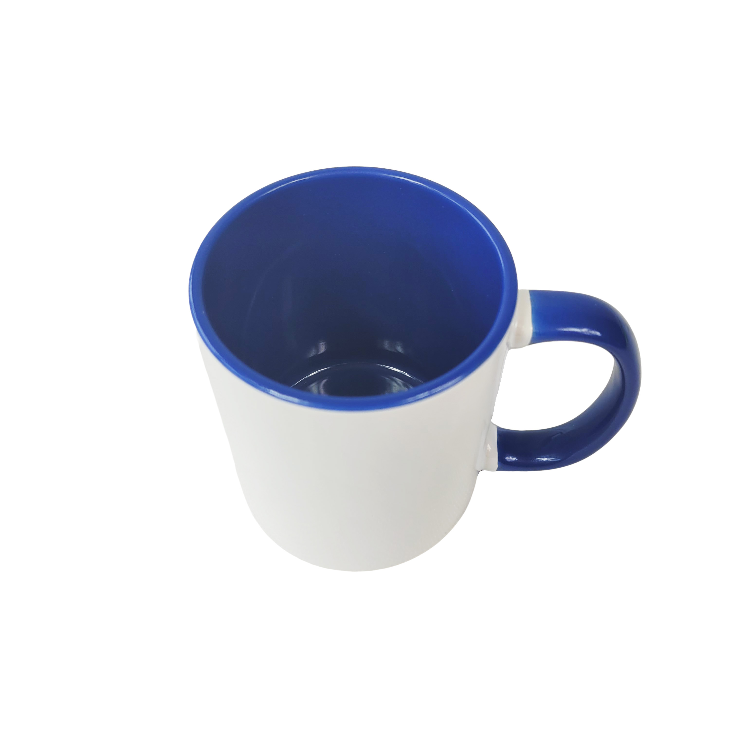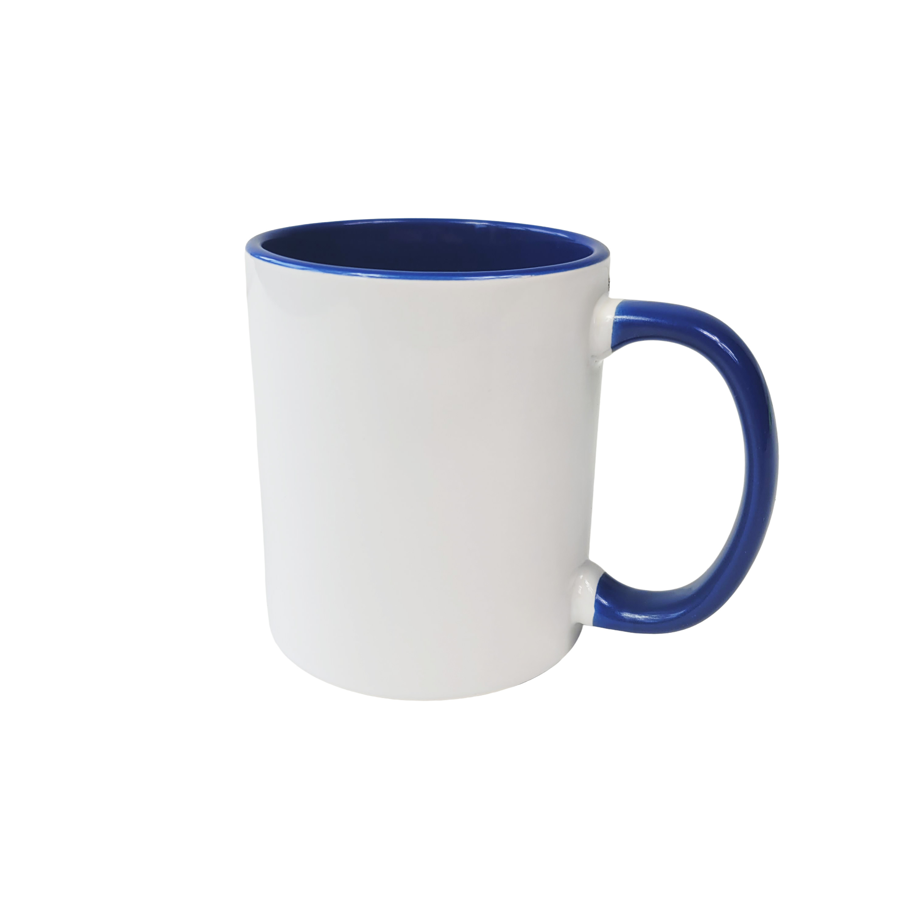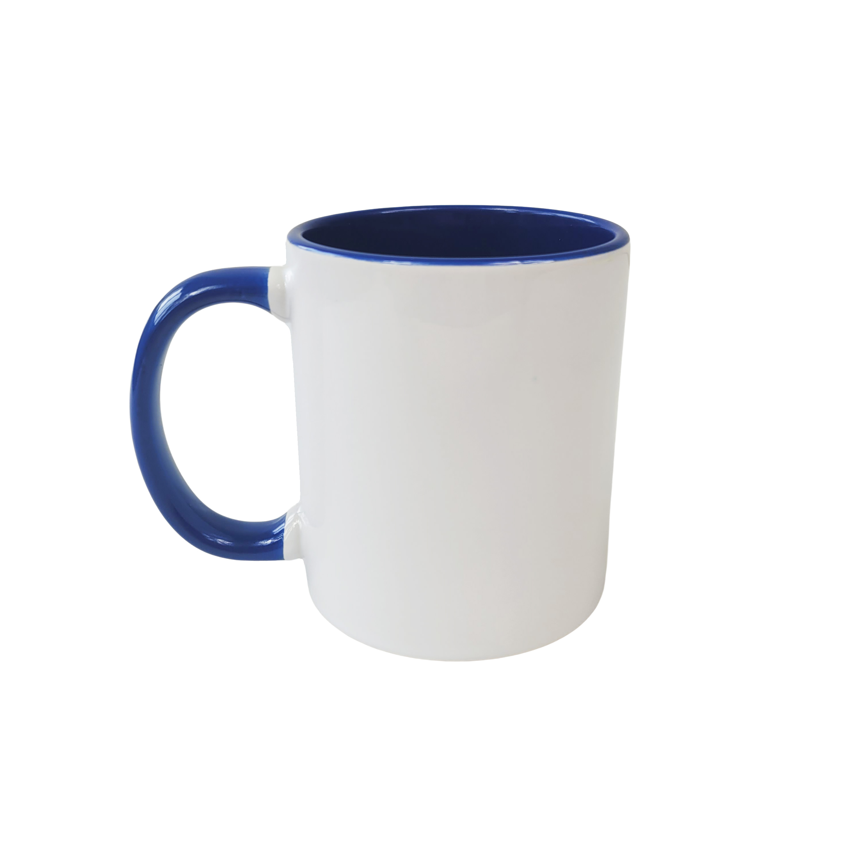 • Błyszczący biały kubek do sublimacji z wygodnym, kolorowym uchem oraz wnętrzem