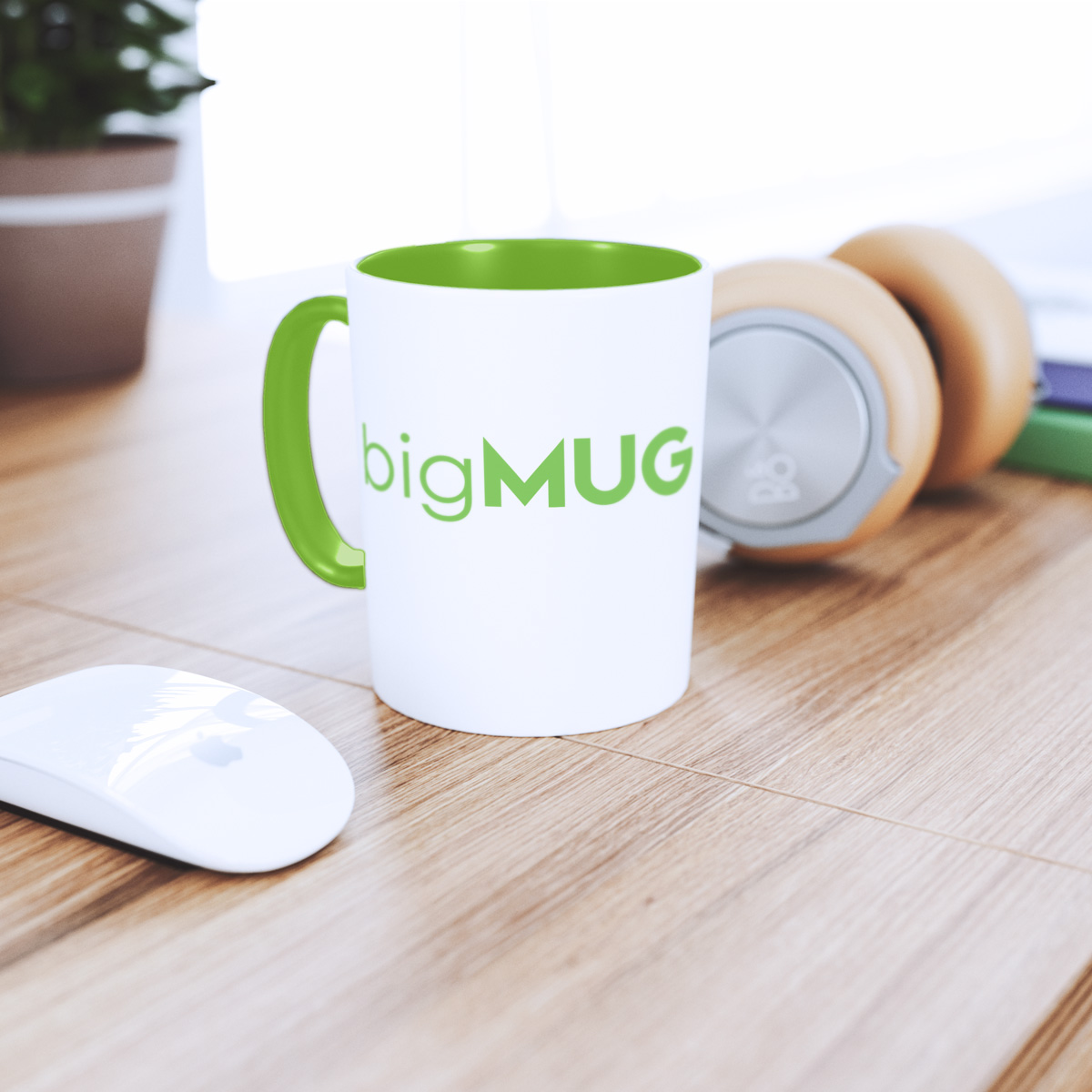 • Błyszczący biały kubek do sublimacji z wygodnym, kolorowym uchem oraz wnętrzem