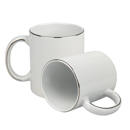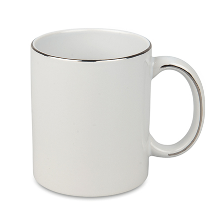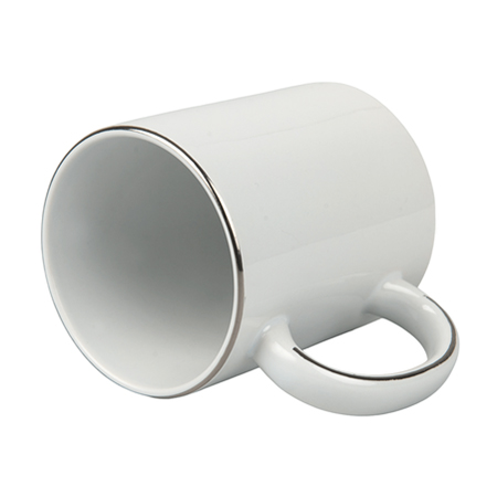 Biały kubek do sublimacji ze srebrnymi paskami na uszku i krawędzi