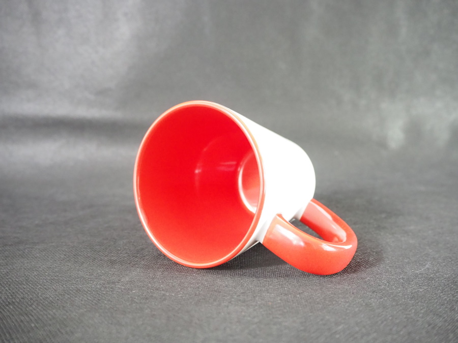 • Kubki z połyskiem w kolorze białym z czerwonym środkiem cechują się wysoką jakością - przy użyciu dobrych materiałów do nadruku sublimacyjnego wiernie oddają naniesione kolory