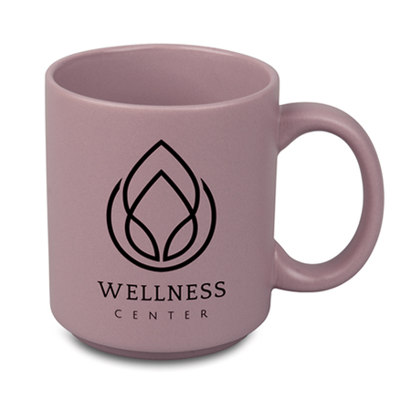 • Matowy, kolorowy kubek z delikatnie wyeksponowanym logo świetnie sprawdzi się jako filiżanka na przerwy kawowe w hotelu czy restauracji
