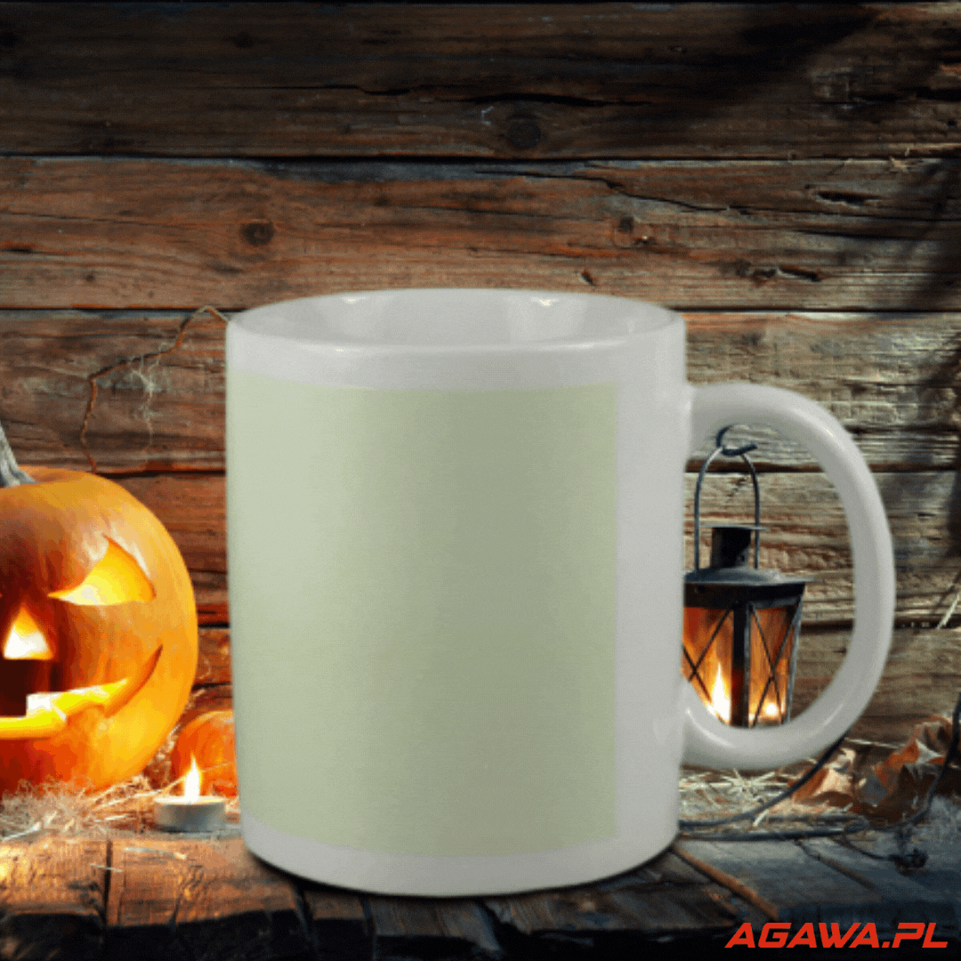 • Biały kubek z fotoluminescencyjnym polem do sublimacji