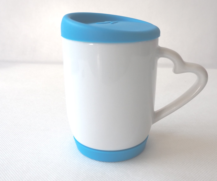 Kubek do sublimacji - z uchwytem w kształcie serca, kolorową silikonową pokrywką i spodem