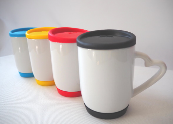 Kubek do sublimacji - z uchwytem w kształcie serca, kolorową silikonową pokrywką i spodem
