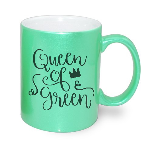 Zielony, brokatowy kubek do wykonywania nadruków