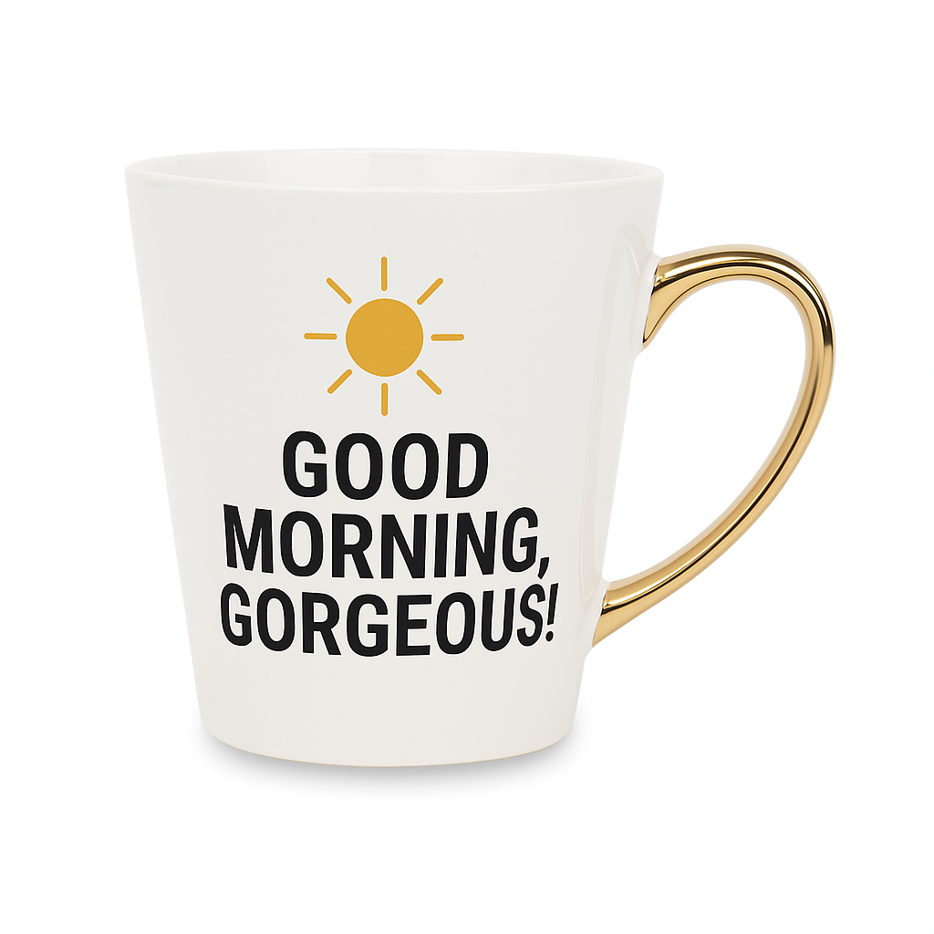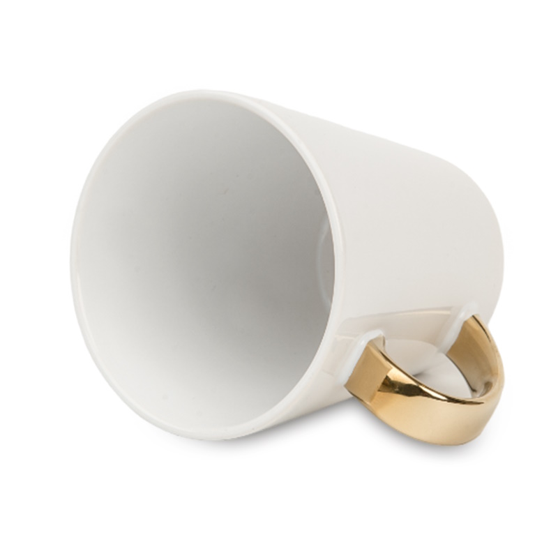 • Błyszczący biały kubek małe latte do sublimacji ze złotym uchem