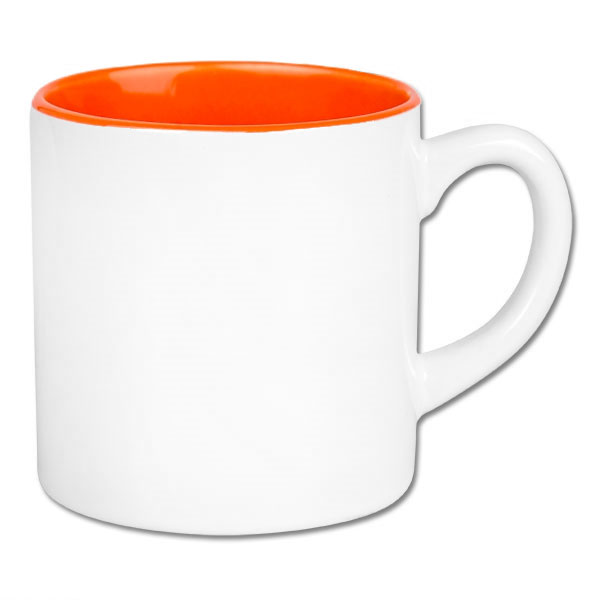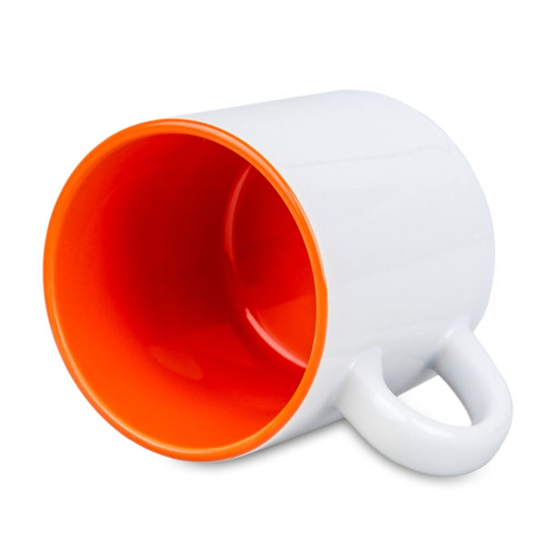 Biały mini kubek do sublimacji z pomarańczowym wnętrzem w dopasowanym kartoniku