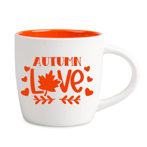 Biały kubek z pomarańczowym środkiem