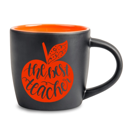 Czarny kubek z pomarańczowym środkiem