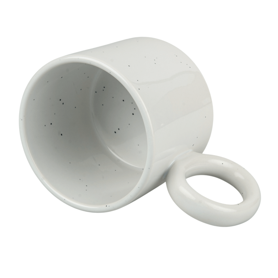 Kubek szeroki do sublimacji z efektem kropek z okrągłym uchem - biały