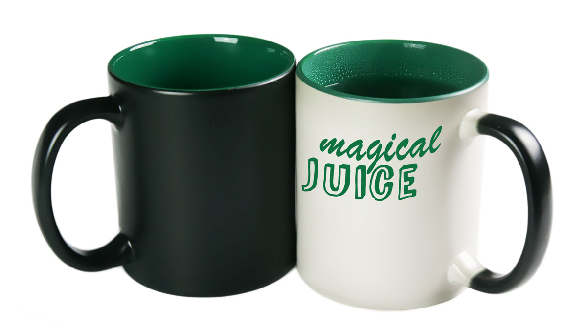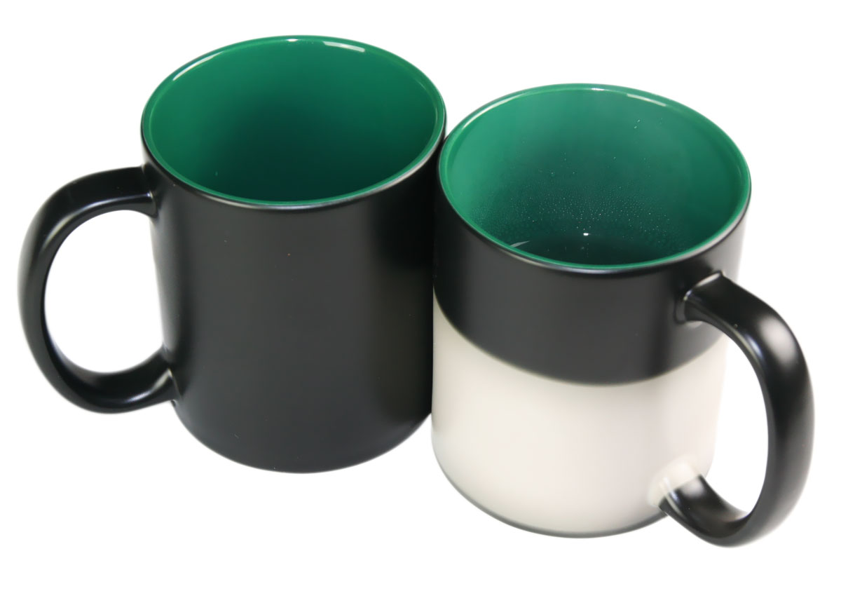 • Termoaktywny kubek posiada specjalne właściwości, dzięki którym zmienia się pod wpływem temperatury - po napełnieniu go gorącym napojem, odsłania nadrukowaną grafikę.