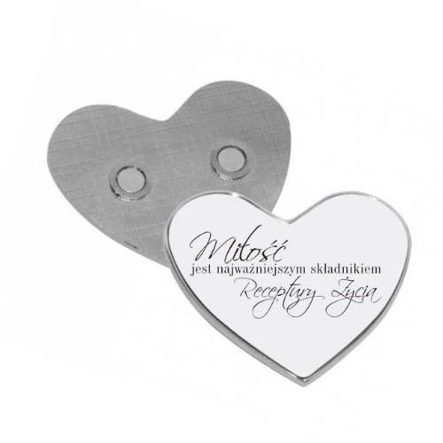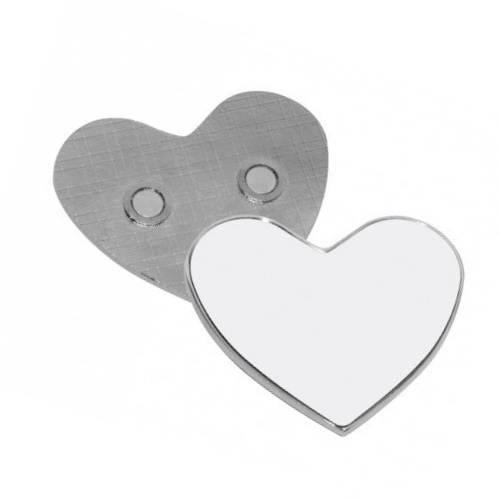 Gładki, metalowy fotomagnes do sublimacji w kształcie serca. Serduszko ma wymiary 5,5 x 4,6 cm oraz grubość 0,2cm. Płytka do sublimacji ma wymiar 5,3 x 4,4 cm.