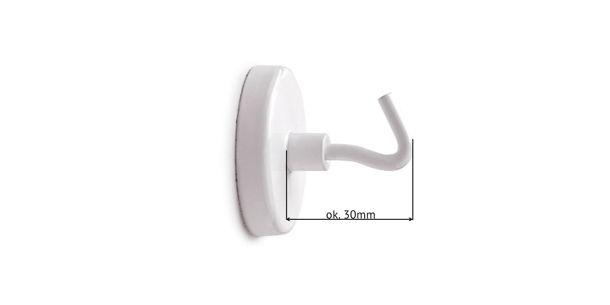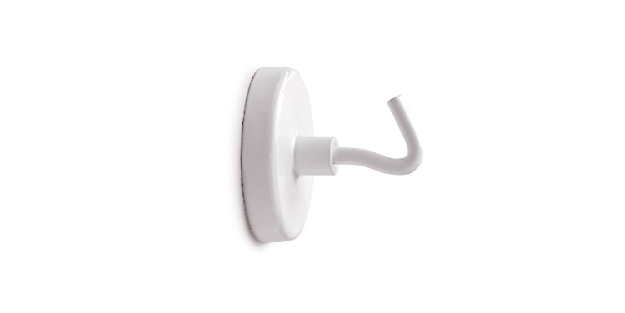 • Bardzo silne magnesy z haczykiem w białej stalowej obudowie o średnicy 36 mm i takiej samej grubości całkowitej