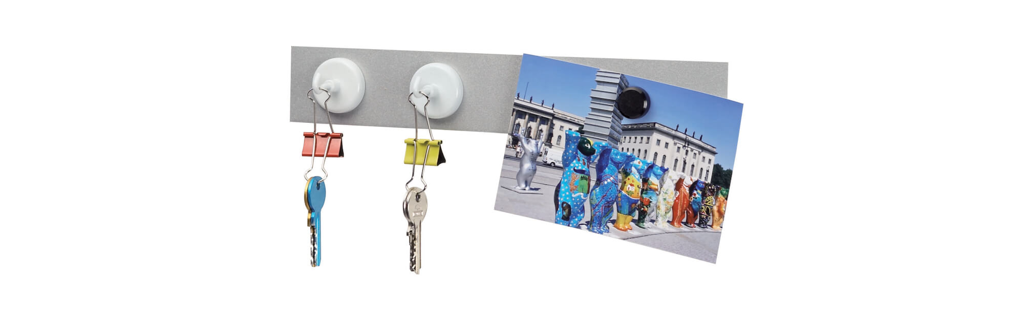 Magnesy i akcesoria magnetyczne charakteryzują się ogromną wszechstronnością. Najpopularniejsze są zwykłe magnesy biurowe, za pomocą których mocuje się rysunki, notatki i plakaty do magnetycznych powierzchni: tablic suchościeralnych i kredowych, na lodówki i inne metalowe podłoża. W warunkach biurowych używane są zazwyczaj magnesy ferrytowe, czyli ceramiczne - są to zwykłe, klasyczne magnesy o standardowej sile przyciągania. Kolorowe magnesy ułatwiają nie tylko biurową pracę, warto też rozważyć ich zakup do szkoły i domu.