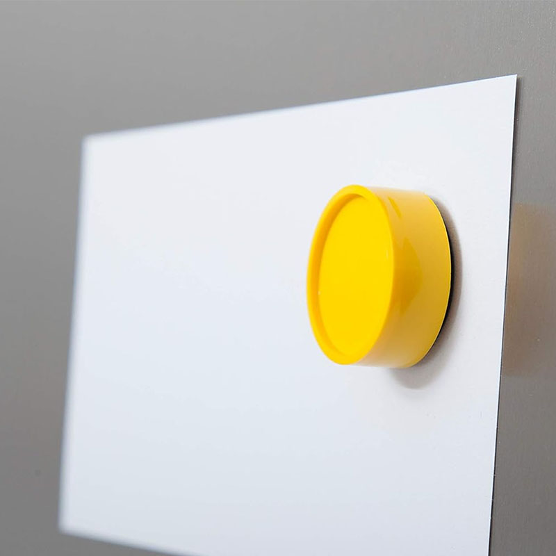 Ogrągłe magnesy przemysłowe w kolorze żóltym o średnicy 34 mm i grubości 13,8 mm