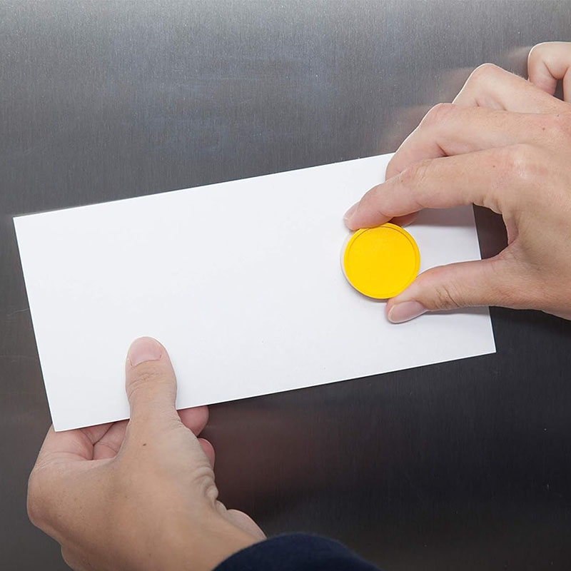 • Kolorowe krążki magnetyczne są wygodne w użytkowaniu: mają wklęsłą powierzchnię i lekko wypukłą krawędź