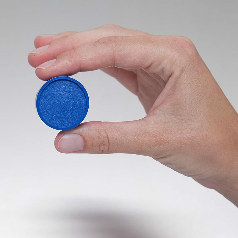 Ogrągłe magnesy przemysłowe w kolorze niebieskim o średnicy 34 mm i grubości 13,8 mm