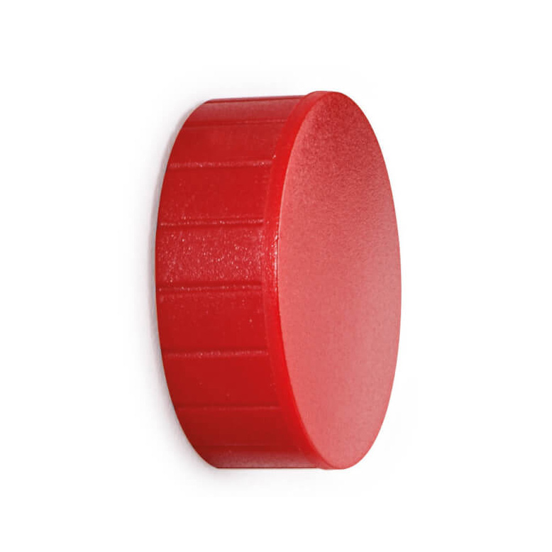 Ogrągłe magnesy w kolorze czerwonym o średnicy 38 mm i grubości 12,5 mm