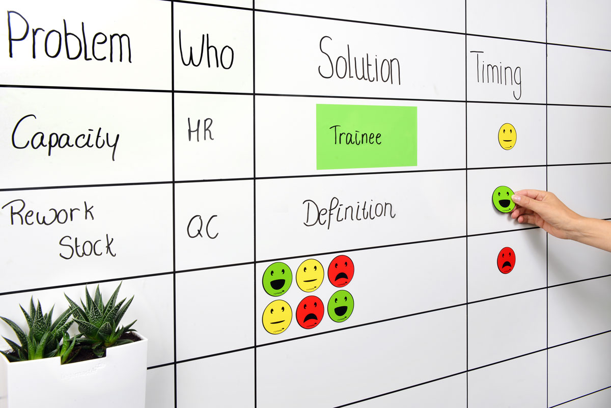 • Kolorowe magnesy buzie to przydatne narzędzie do planowania działań oraz przeprowadzania burzy mózgów (metody Agile, Scrum, Lean, Kanban i inne)