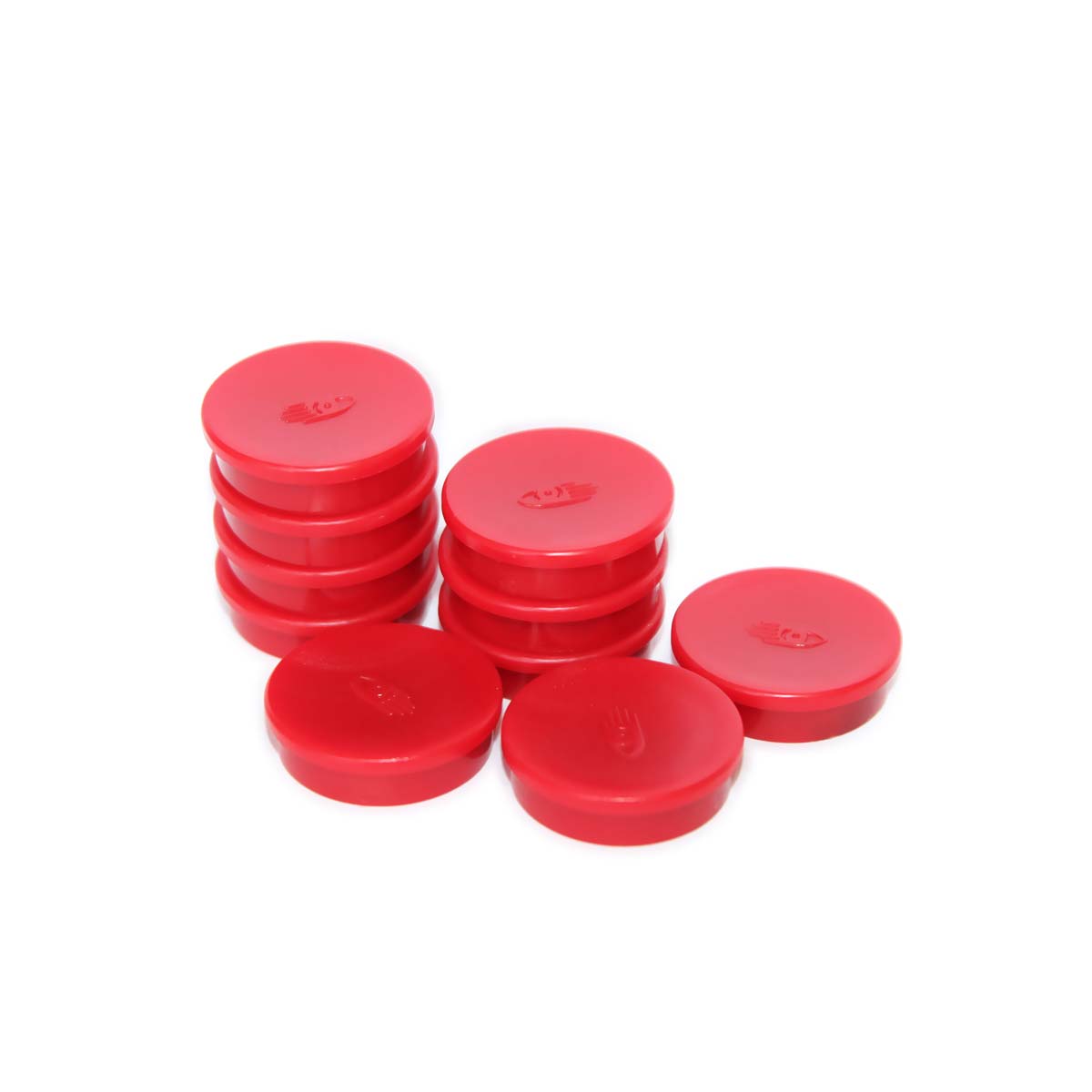 • Okrągłe magnesy ferrytowe w czerwonej plastikowej obudowie o średnicy 30 mm