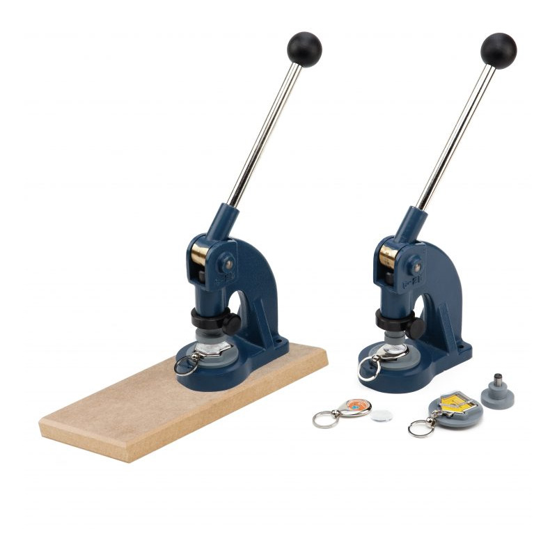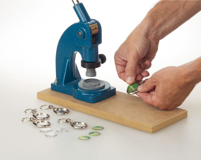 Maszyna do składania breloków to bardzo proste, manualne urządzenie, umożliwiające szybką i łatwą produkcję zawieszek do kluczy. Praska pozwala na samodzielną produkcję breloków: wystarczy zwykły papier ksero, dowolna drukarka oraz wybrany projekt graficzny. W zależności od głowicy, można tworzyć zawieszki w różnych średnicach i kształtach.