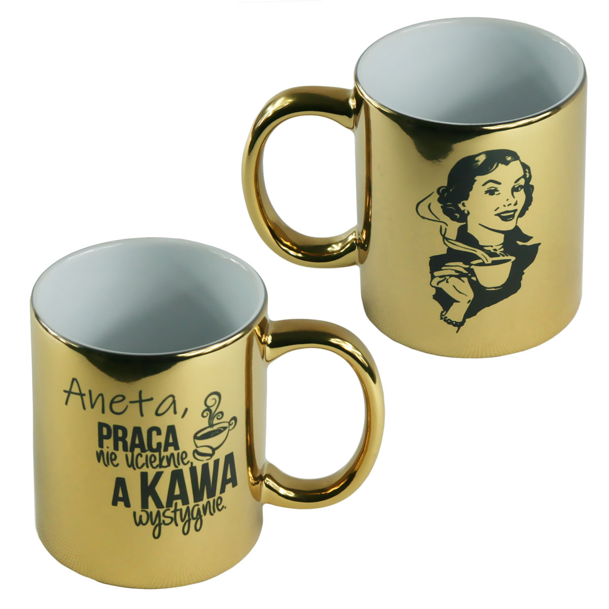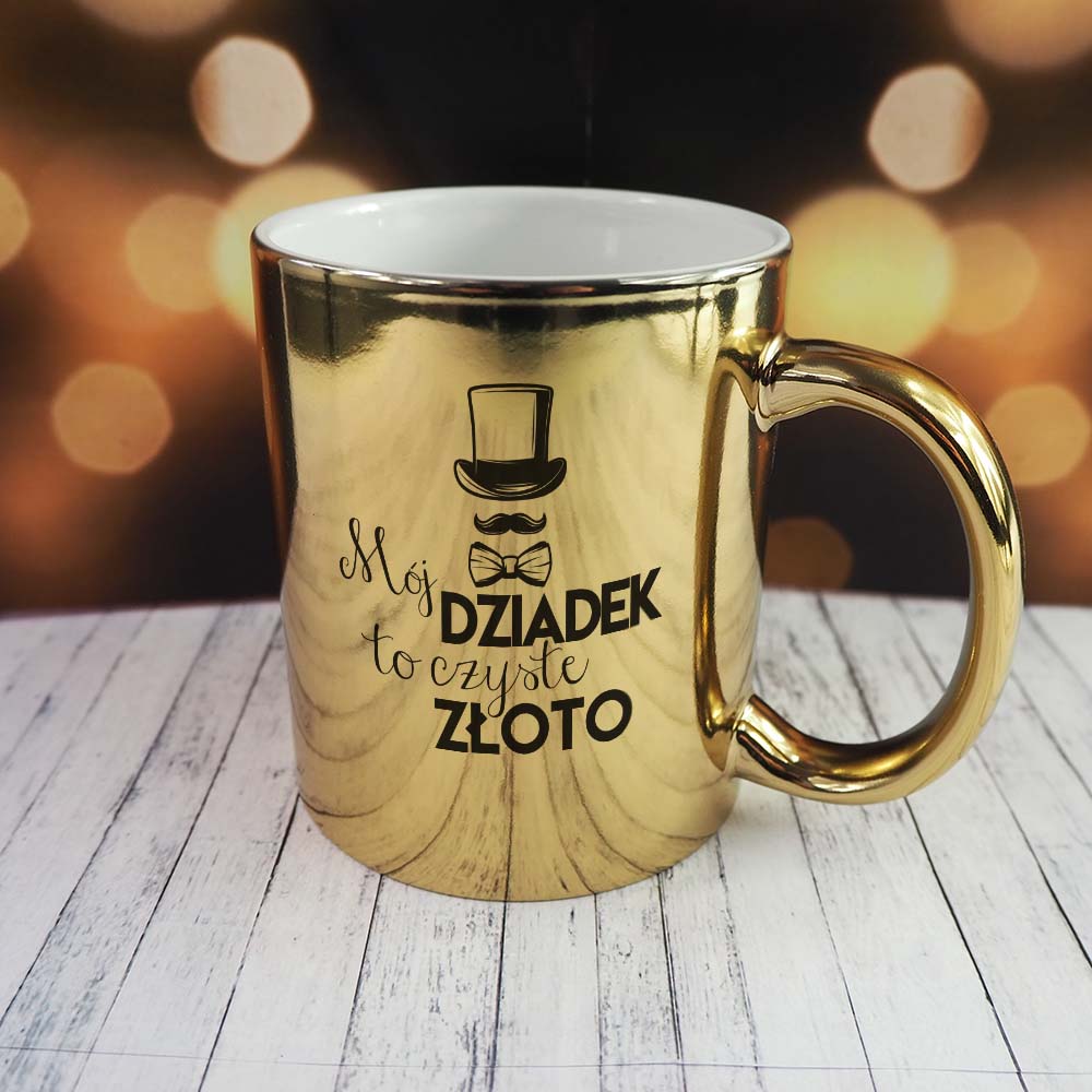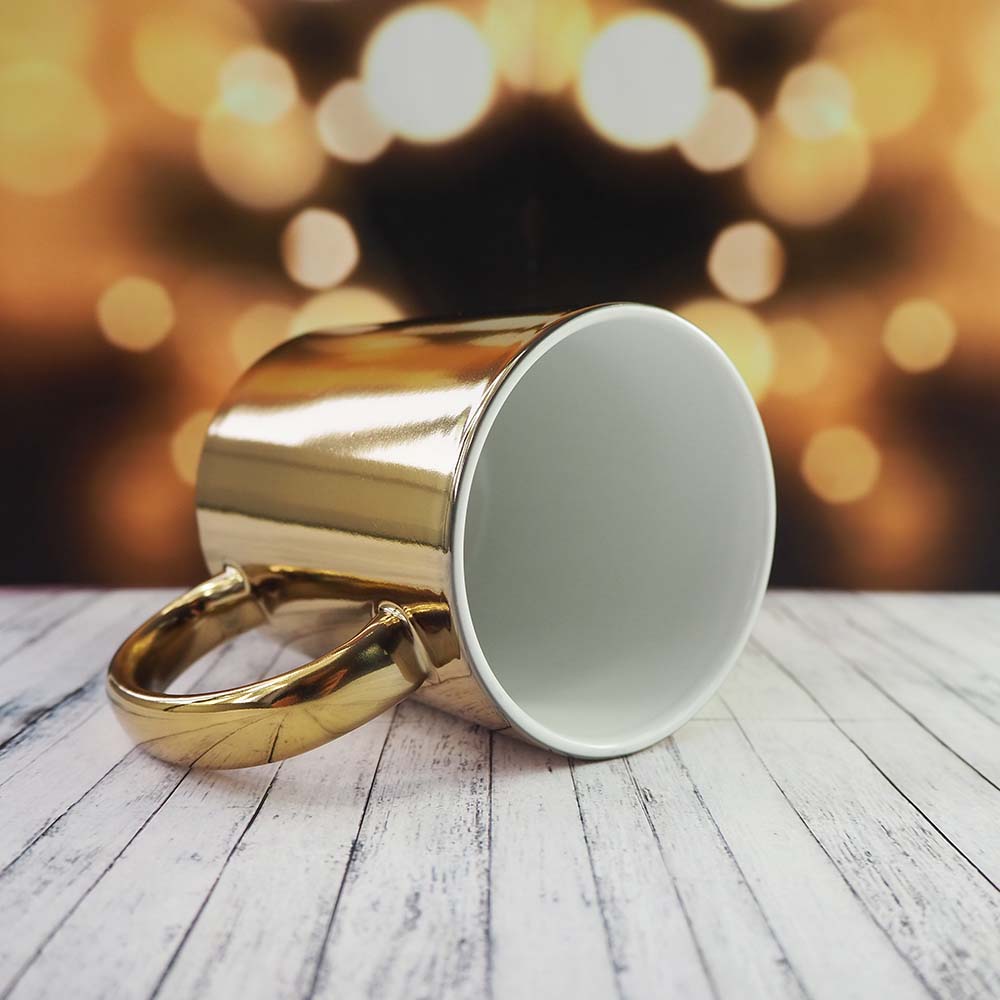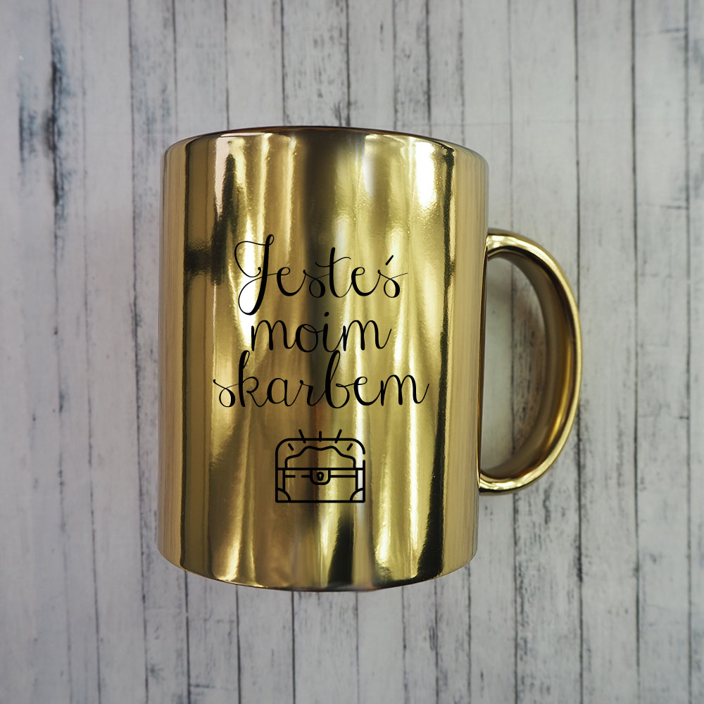 Złoty, błyszczący (jak platerowany) kubek do wykonywania nadruków