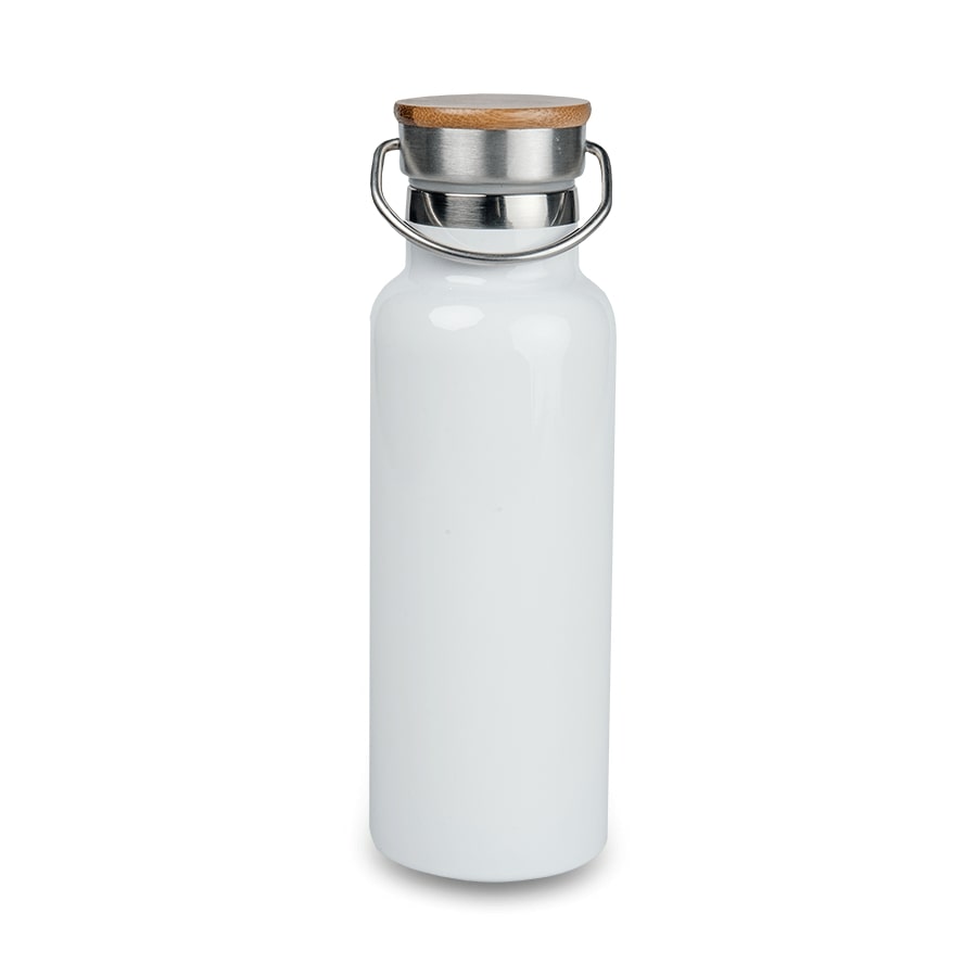 Metalowa butelka z bambusową zakrętką do sublimacji to doskonałe rozwiązanie dla wszystkich lubiących długo cieszyć się swoim ulubionym, gorącym napojem. Metalowa butelka termiczna jest wytrzymała na trudne warunki, sprawdzi się więc u osób lubiących sport i wysiłek fizyczny. Turystyczna butelka na napoje świetnie sprawdzi się nie tylko na wyprawie rowerowej ale także na siłowni czy wycieczce. Solidna konstrukcja sprawia, że metalowy termos z zamknięciem wytrwa nawet na najbardziej ekstremalne wyprawy. Szczelne bambusowe zamkniecie gwarantuje, że ulubiona kawa zachowa swoją temperaturę przez długi czas.