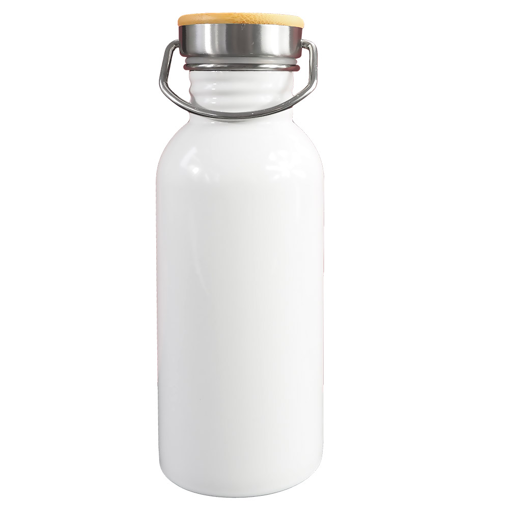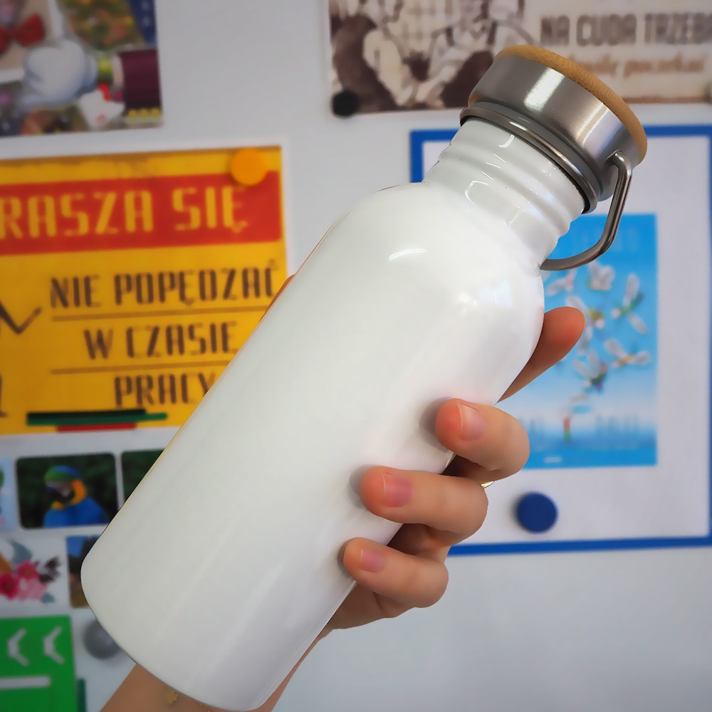 Metalowa butelka do sublimacji z bambusową zakrętką to doskonałe rozwiązanie dla wszystkich lubiących cieszyć się swoim ulubionym napojem w każdych warunkach. Biała butelka z metalu jest wytrzymała, nie pęka dlatego też sprawdzi się u osób lubiących sport i wysiłek fizyczny. Turystyczna butelka na napoje świetnie sprawdzi się nie tylko na wyprawie rowerowej ale także na siłowni czy wycieczce. Solidna konstrukcja sprawia, że metalowy bidon z bambusowym zamknięciem wytrwa nawet najbardziej ekstremalne wyprawy. Szczelne zamkniecie gwarantuje, że ulubiona herbata nie rozleje się w plecaku.