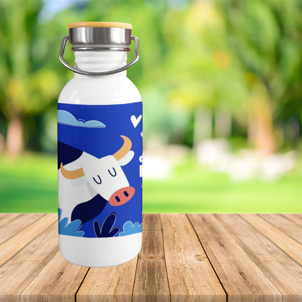 Metalowa butelka z bambusową zakrętką do sublimacji i graweru