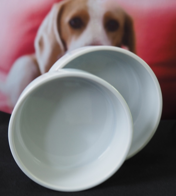 Mała psia miska do nadruku ma wysokość - 6 cm, średnicę - 15 cm, pojemność - 650 ml