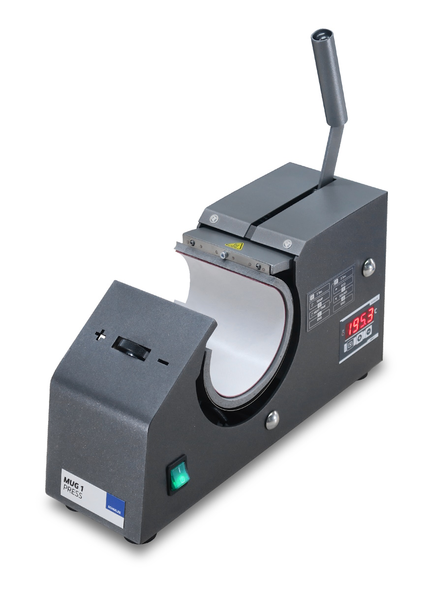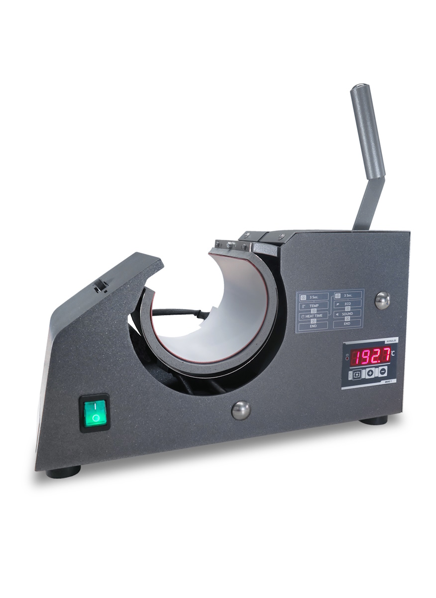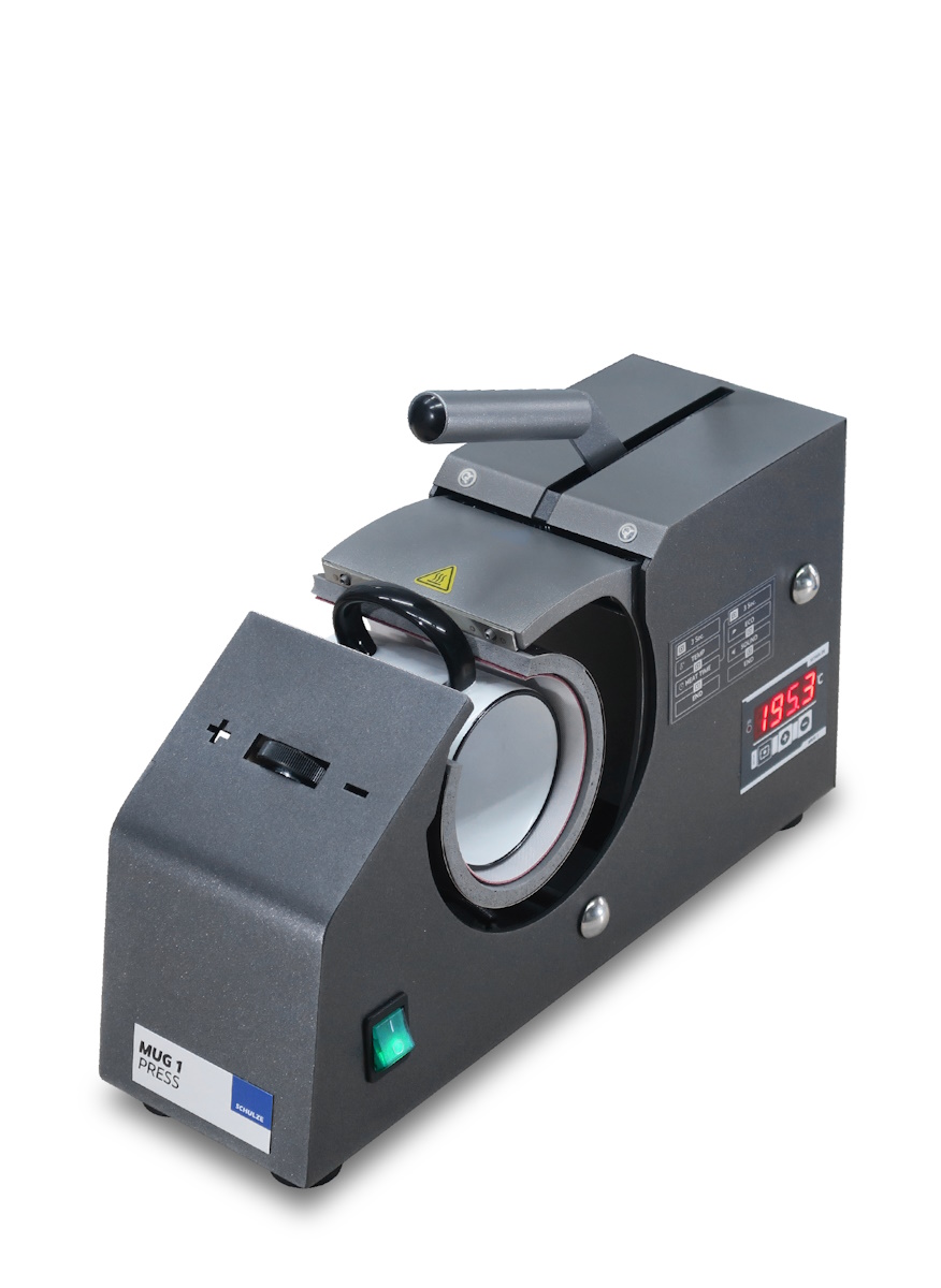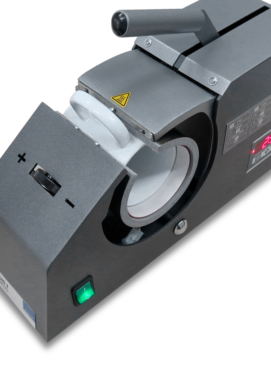 • Prasa do nadruków na kubkach rozgrzewa się stosunkowo szybko, co stanowi oszczędność czasu i energii