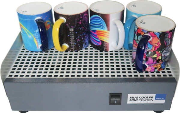 • Maszyna Mug Cooler Mini Station służy do szybkiego studzenia kubków po wyjęciu z prasy transferowej lub pieca