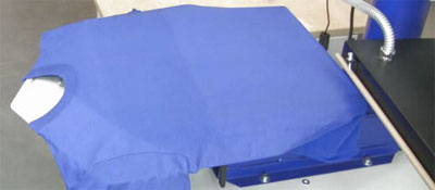 • Na napinacz materiału nakłada się przeznaczoną do znakowania odzież, by ułatwić pozycjonowania i zapobiec powstawaniu marszczeń tkaniny