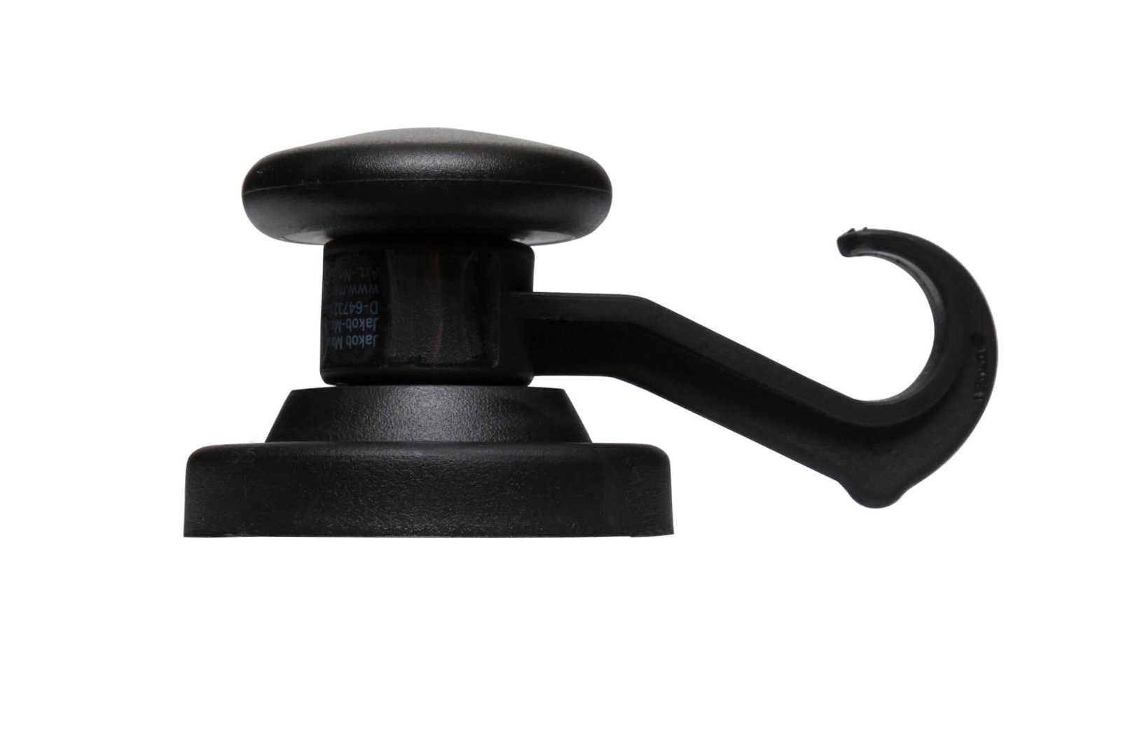 • Silne, czarne magnesy z haczykiem w obudowie z mocnego tworzywa sztucznego o średnicy 53 mm