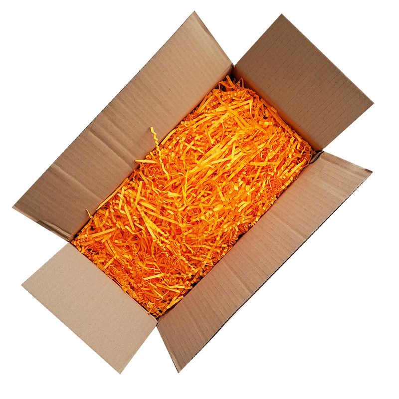 Pomarańczowe, neonowe wypełnienie do prezentów w opakowaniu 1kg - karton o wymiarach 395mmx195mmx255mm
