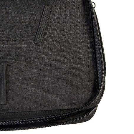 • Dwukomorowy piórnik do szkoły do nadruku jest wyposazony w czarne gumeczki na szkolne przybory i akcesoria (ołówki, kredki, linijki, mazaki, gumki, temperówki itp.)