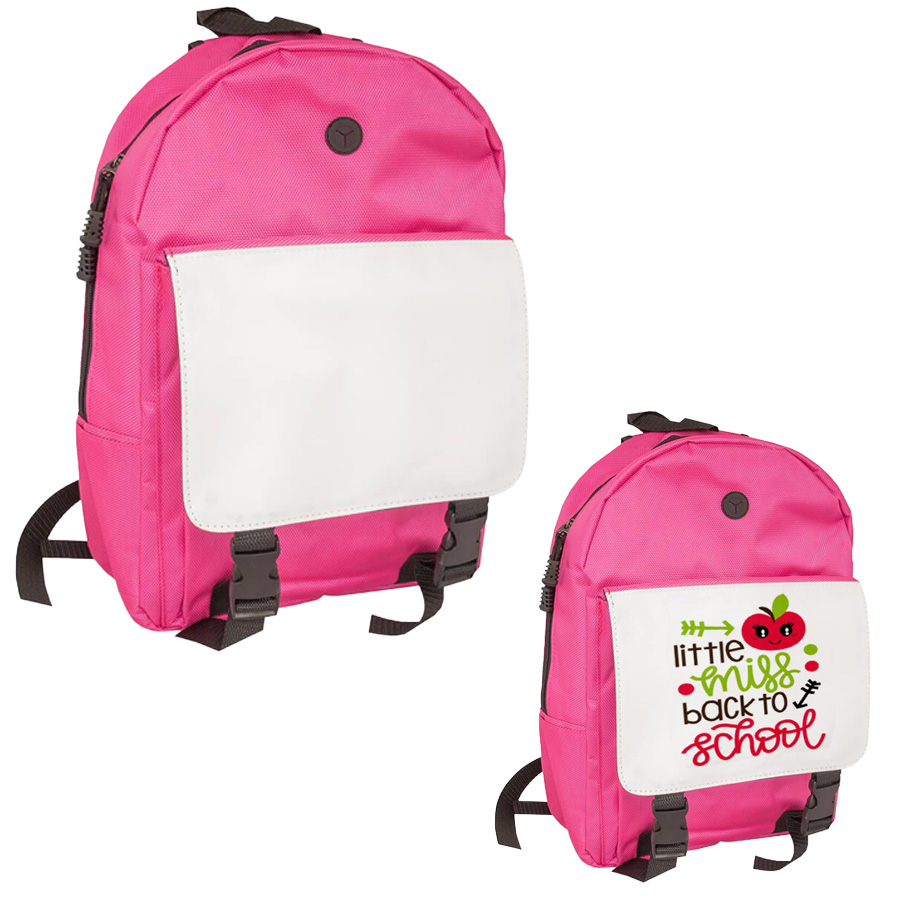 • Biała klapka do nadruku jest przypinana na rzep, można ją z łatwością odpiąć w celu wykonania nadruku, po czym łatwo przyczepić zasublimowaną ponownie do plecaka