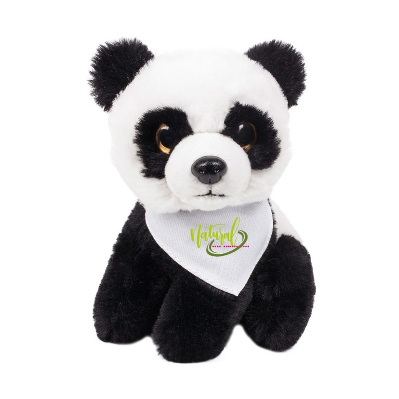 Maskotka - pluszowa panda z białą chustą do sublimacjima wysokość 14 cm, wymiary chustki: 5 x 2 cm.