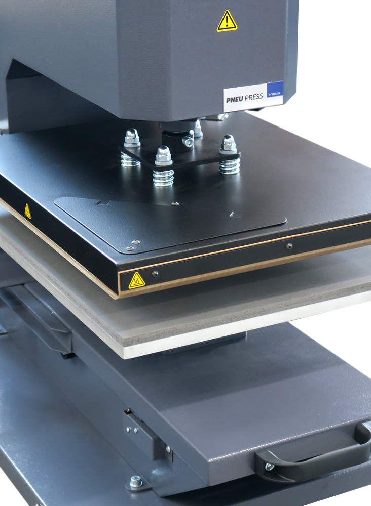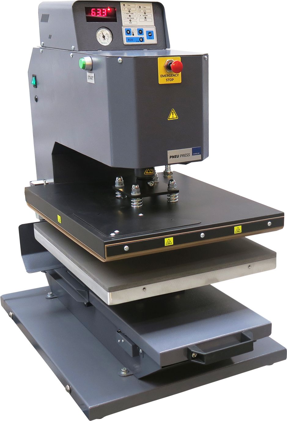 • Automatyczna, pneumatyczna prasa termotransferowa Pneu Press (dawniej BluePressLine Pneu) do powierzchni płaskich