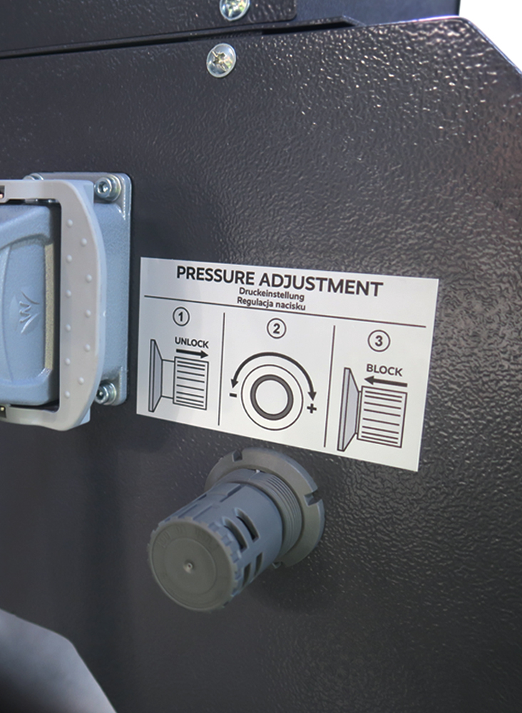 • Na prasie można płynnie regulować nacisk do 1800 kg. Prasa wymaga podłączenia do kompresora