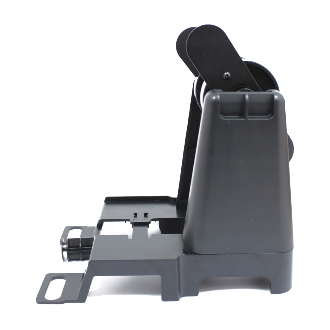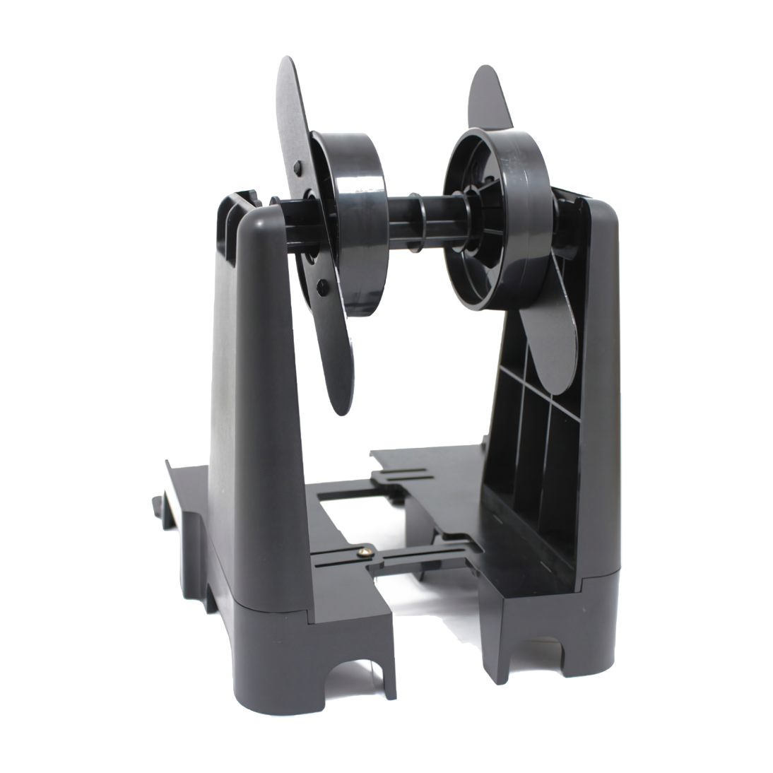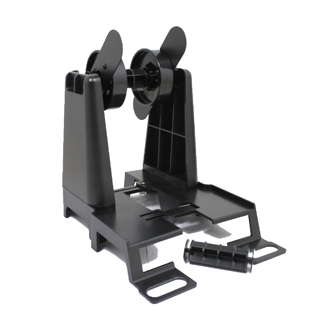 Uniwersalny stojak przeznaczony do podawania materiałów eksploatacyjnych z dużych rolek, które nie mieszczą się wewnątrz drukarki biurkowej. Umożliwia wygodne i stabilne podawanie taśmy z tyłu drukarki, co znacząco zwiększa komfort pracy oraz pozwala korzystać z rolek o większej średnicy.